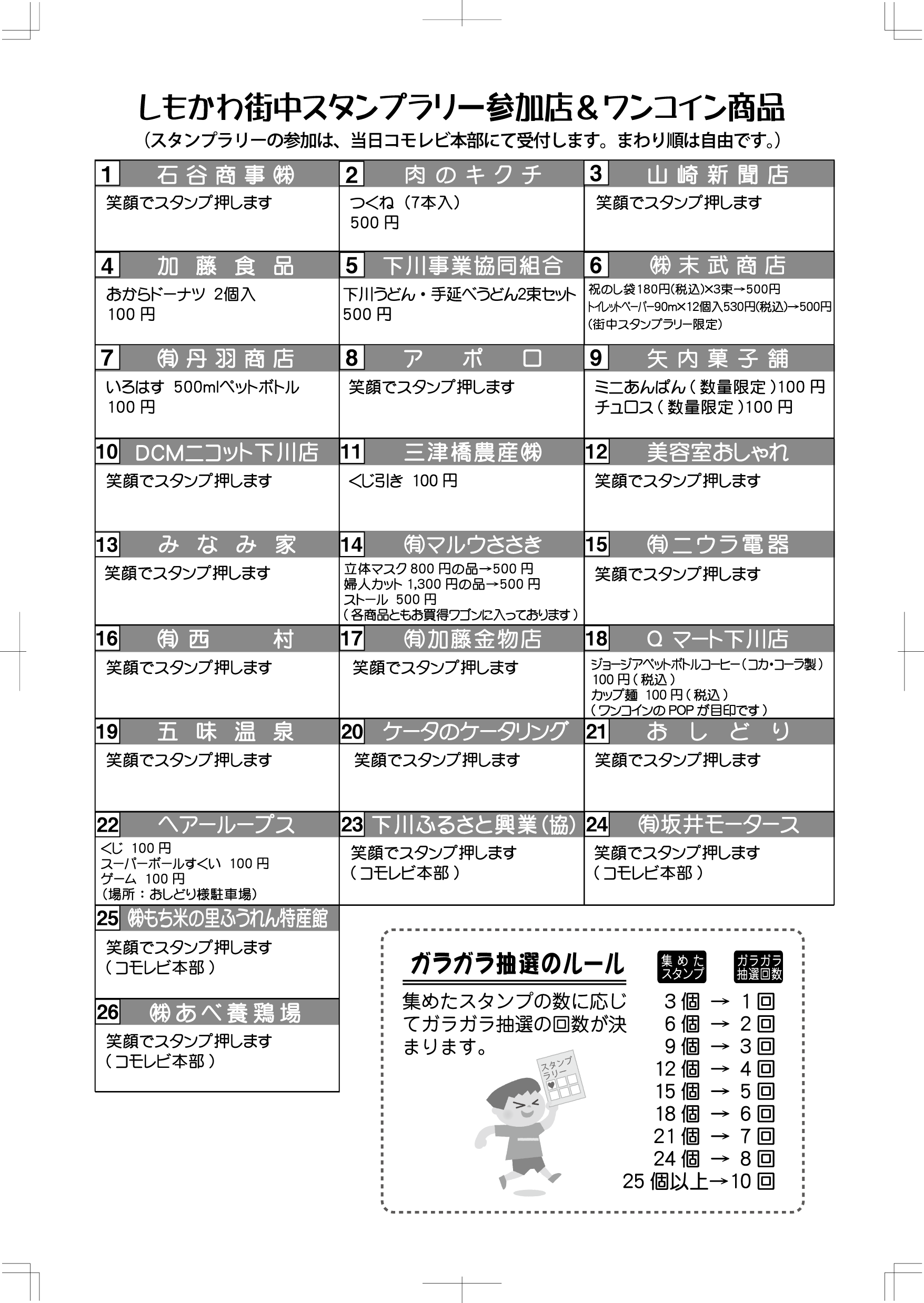 昨年度に引続き、下川町商工会・風連商工会と連携を図りながら下記の通り、「しもかわ街中スタンプラリー」を開催いたします!!